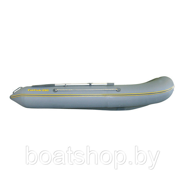 CatFish 290 - это легкомоторная килевая ПВХ лодка со стационарно установленным транцем, надувным килем и жестким фанерным пайолом толщиной 9 мм. Данная модель рассчитана на 3-х человек и использование подвесного мотора мощностью до 6 л.с.