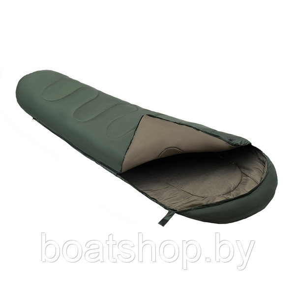 В качестве наполнителя использован современный синтетический материал HollowFiber, 250 г/м2, который обеспечивает отличную теплоизоляцию спальника.