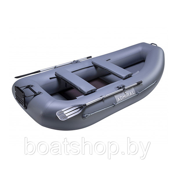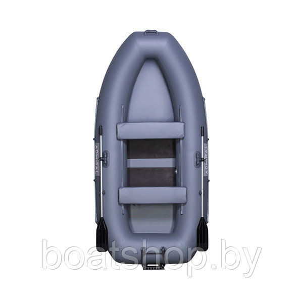 Адмирал 300Т - это легкая надувная гребная лодка рассчитанная на двух человек, в комплекте с транецем для навесного мотора до 3,5 л.с.