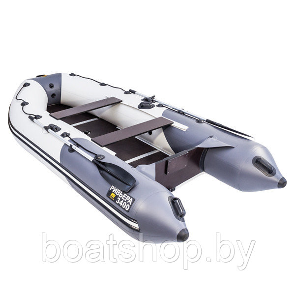 Надувная моторно-килевая лодка Ривьера Компакт 3400 СК "Комби" светло-серый/графит